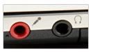 ④ 笔记本的插孔:一般在电脑机身的侧面或前面,插孔的旁边有话筒标志的是连接话筒的,有耳机标志的是连接耳机的,如图: